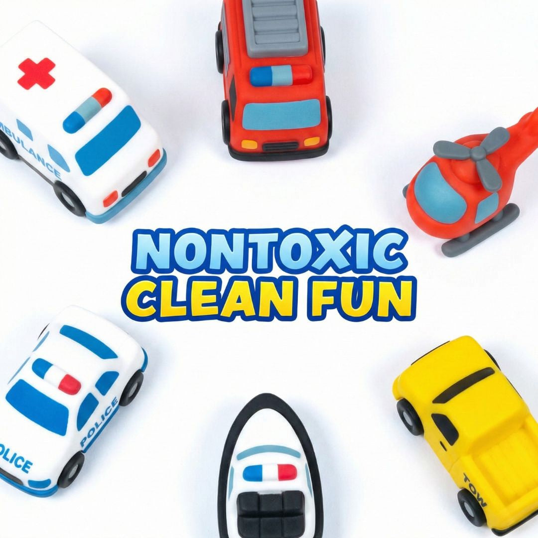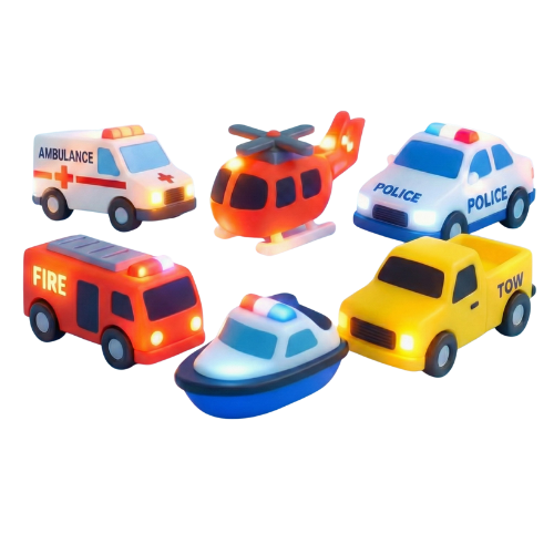 The 6-pack includes fun rescue and service vehicles like: